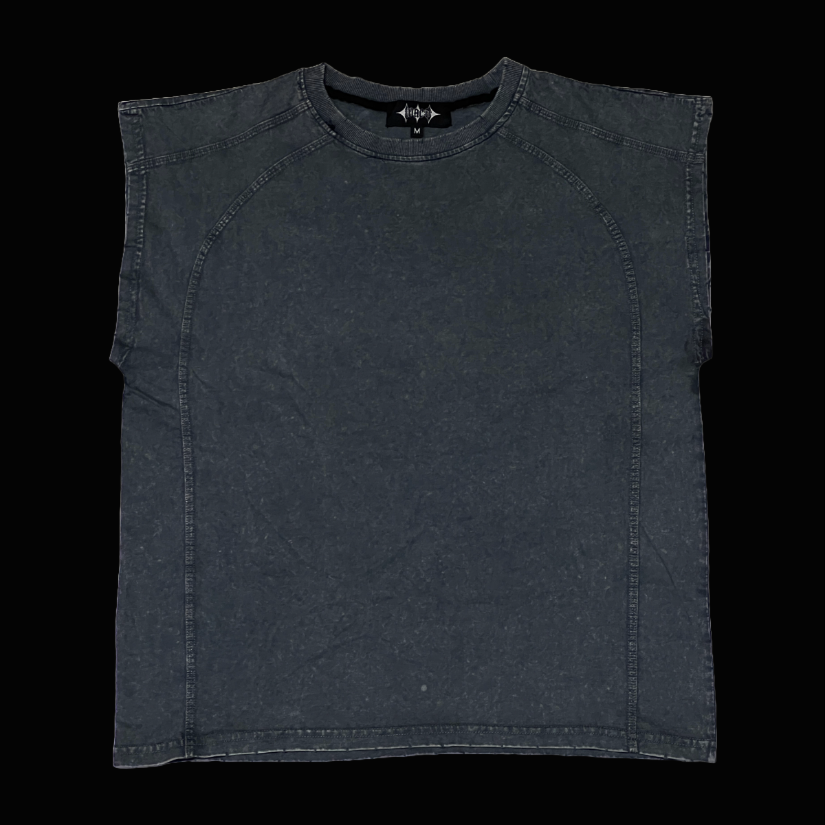 Acid-washed to ghostliness and cut from 210GSM cotton jersey, this cropped tank slips between shadows. The fabric’s weight adds heft to the silence. It's a null statement. A quiet war cry. Wear it when you disappear.